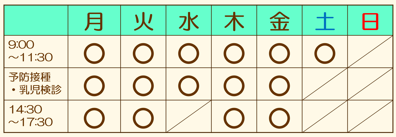 ※平日の13:30-14:30は、予防接種・乳児検診を主に行います。